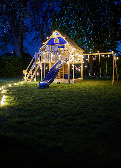 Stelzenhäuser mit Rutsche und Schaukel für den Garten